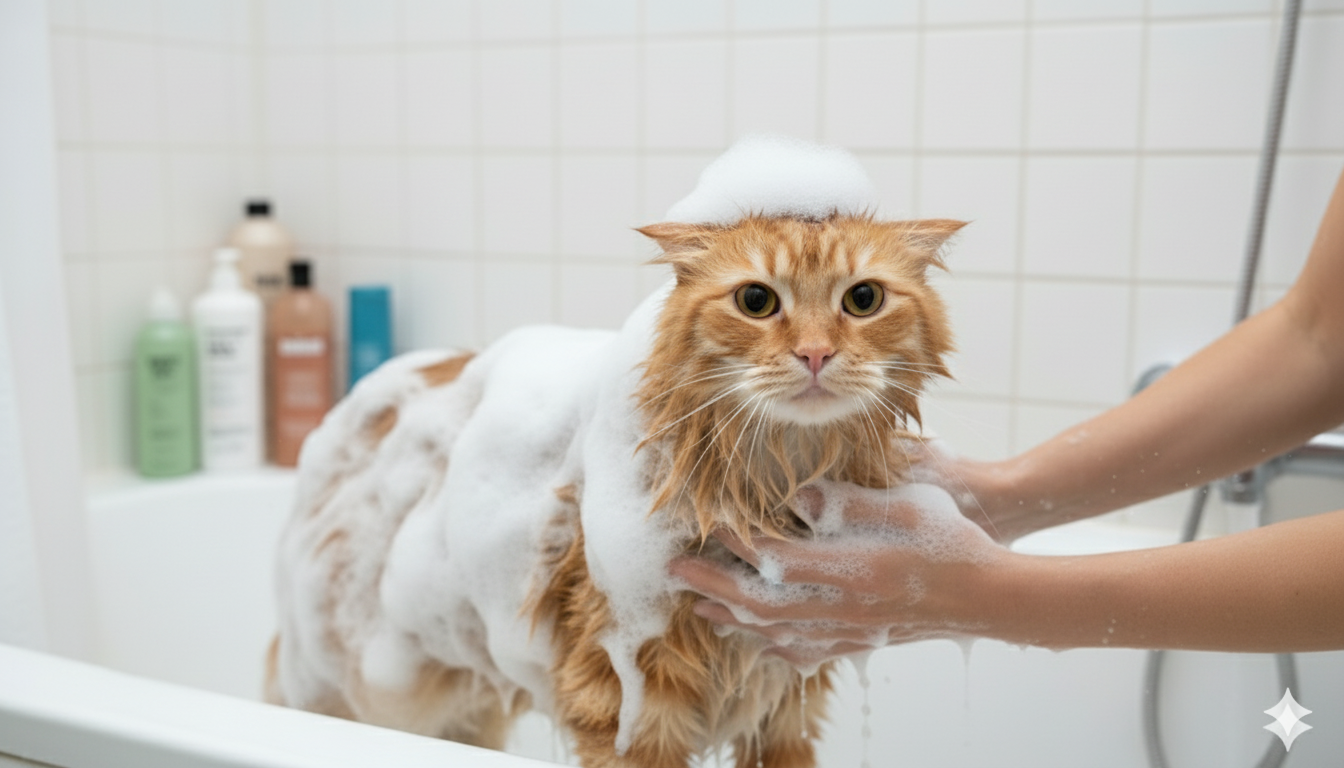 Es un champú en formato espuma que limpia, desodoriza y protege el pelaje del gato sin necesidad de agua, eliminando bacterias, malos olores y suciedad de manera natural.